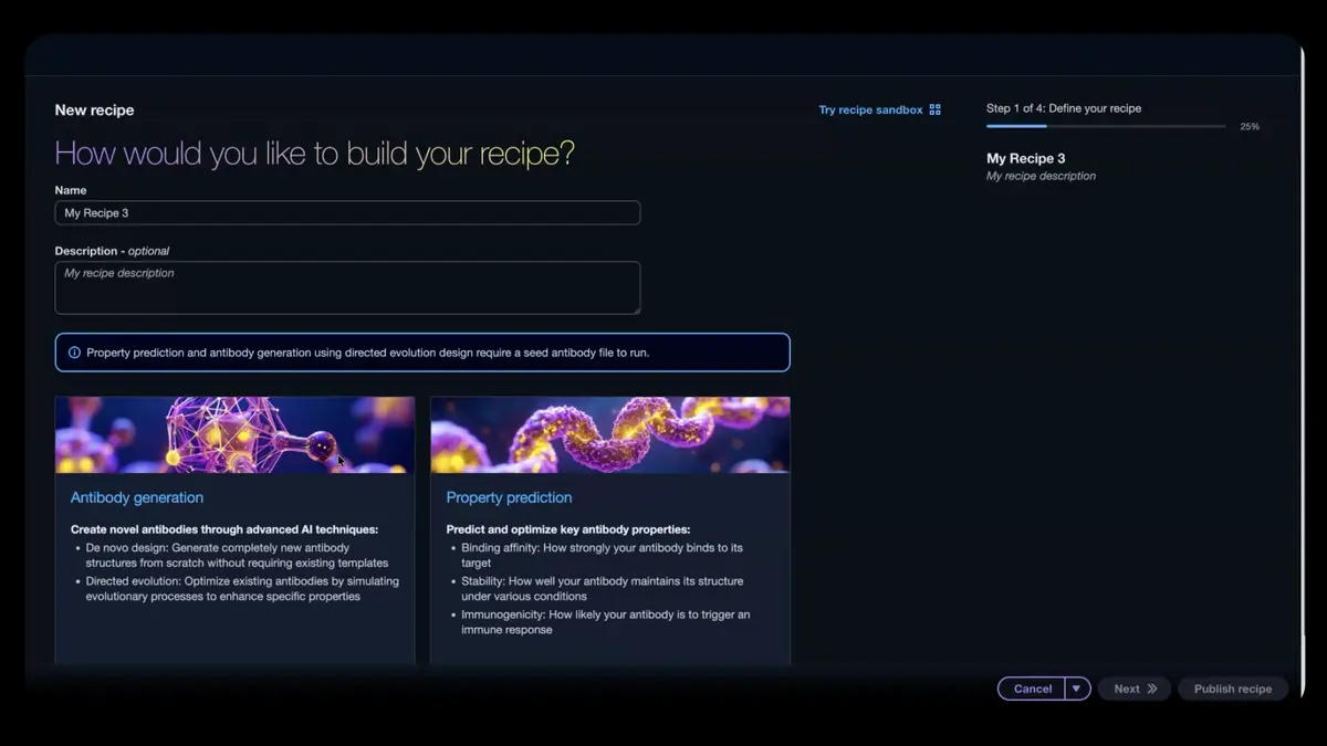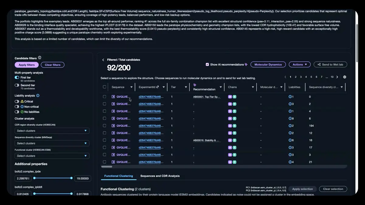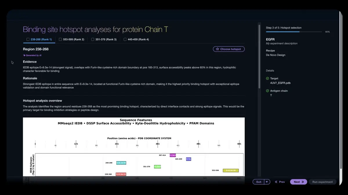 The application combines computational design tools and wet-lab validation in a single system. Researchers can use an AI agent to choose from more than 40 biology models, set up experiments, assess candidate molecules and send selected candidates to laboratory partners for testing.