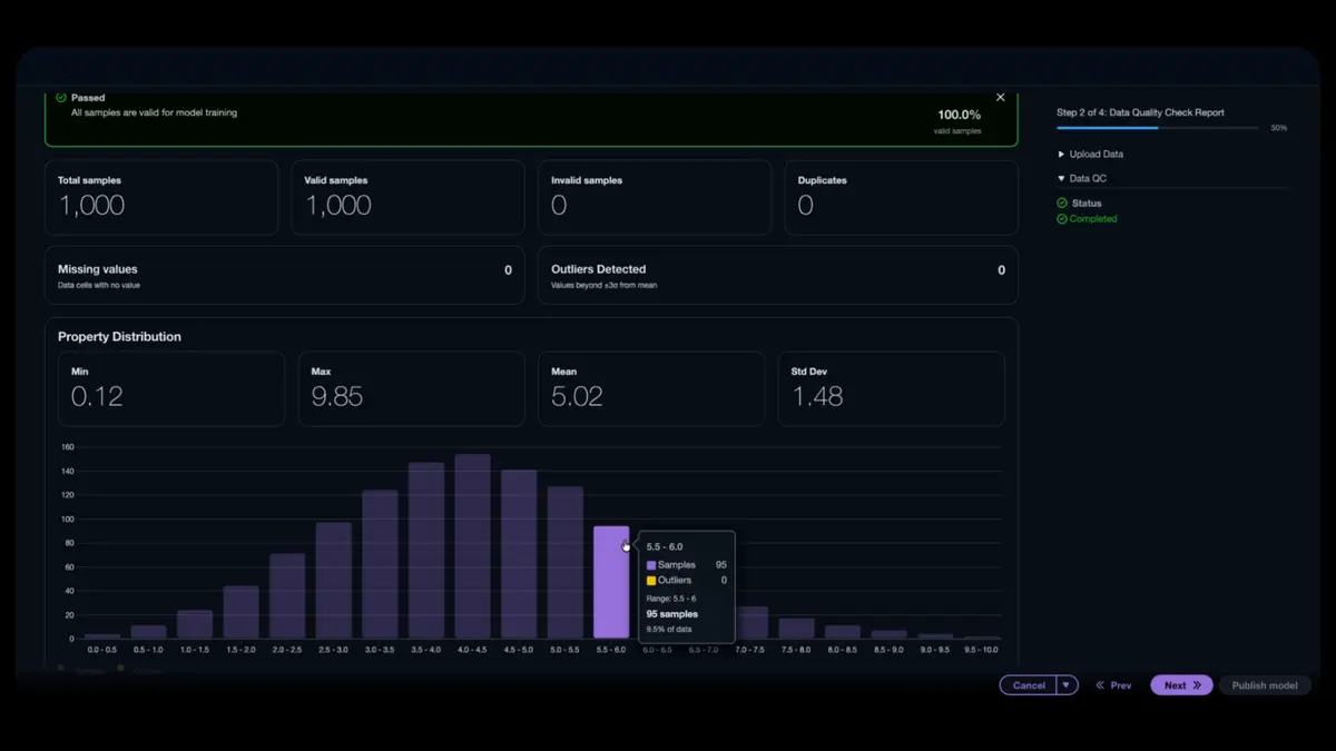 The product also includes benchmarking tools to help researchers compare models against reference datasets before choosing which to use in a workflow. Scientists can run head-to-head comparisons and review recommendations from the AI assistant, which suggests models and explains its reasoning.